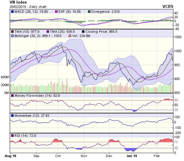 Đường SMA20 tương ứng 945-955 điểm sẽ đóng vai trò là ngưỡng hỗ trợ cho chỉ số trong một vài phiên giao dịch tiếp theo.