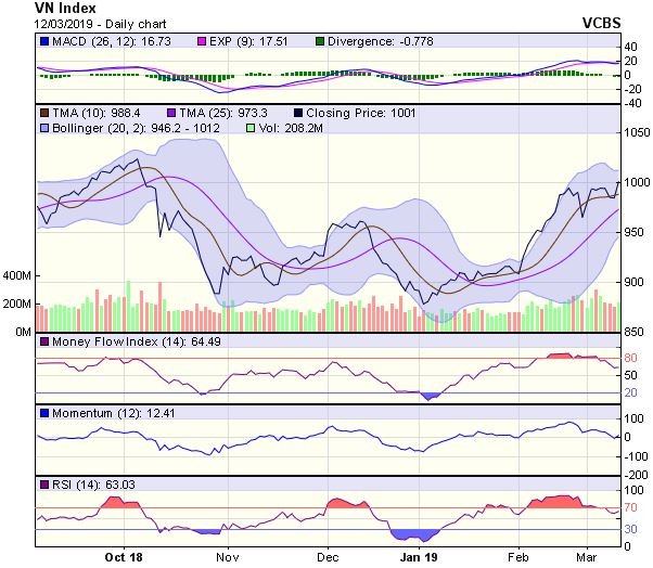 Ngưỡng điểm 1.004,55 điểm thiết lập ngày 07/3/2019 sẽ không phải là ngưỡng cản quá mạnh và khó cản được bước tiến của VN-Index trong ngắn hạn.