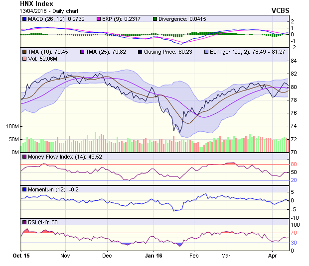HNX-Index chính thức vượt qua ngưỡng cản ở đường MA200 và xác lập xu hướng tăng tích cực. Thanh khoản cũng gia tăng trong phiên hôm nay. Các chỉ báo như RSI, MACD vẫn đang cho tín hiệu hồi phục tích cực trở lại.