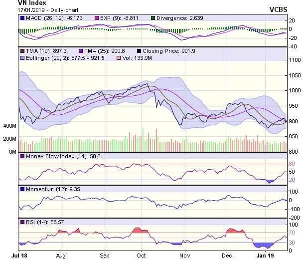 Góc nhìn kỹ thuật phiên 18/1: Có thể tiếp tục giảm về vùng hỗ trợ 888-896 điểm