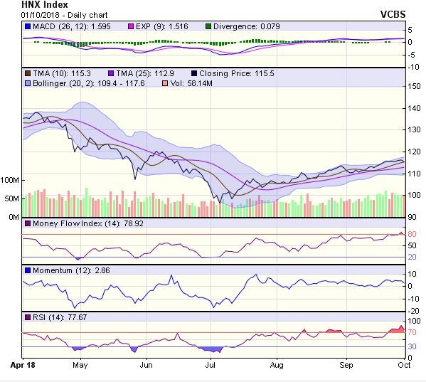 Biểu đồ kỹ thuật HNX-Index. Nguồn: VCBS.