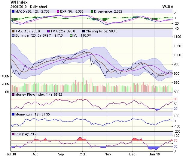 Góc nhìn kỹ thuật phiên 25/1: Giằng co trong biên độ 900-920 điểm