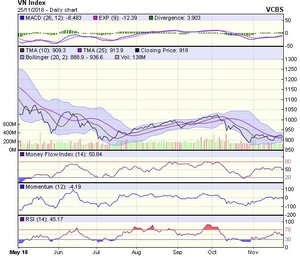 Góc nhìn kỹ thuật phiên 26/11: Kỳ vọng sẽ tiến đến vùng kháng cự mạnh tại 955-965 điểm