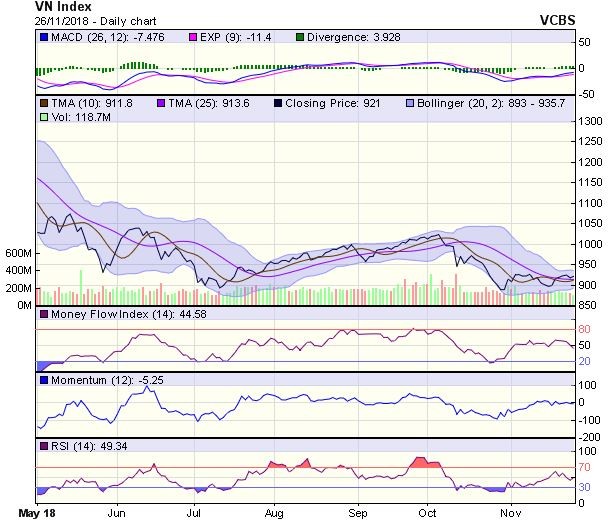 Dự báo, trong phiên giao dịch 27/11, VN-Index có thể sẽ tiếp tục giằng co và đi ngang trong biên độ 900-930 điểm với nền tảng thanh khoản thấp.