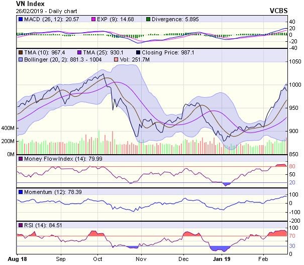 Góc nhìn kỹ thuật phiên 27/2: Thử thách từ vùng cản 995-1.000 điểm