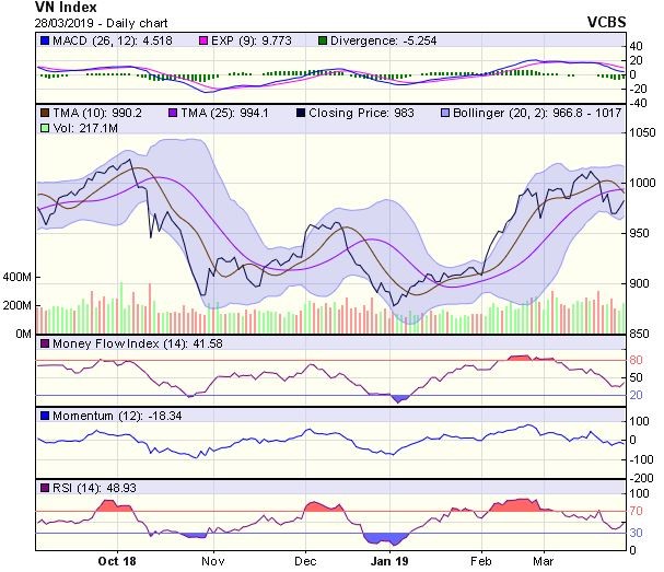 Trong trường hợp, chỉ số có thể bứt phá qua được ngưỡng kháng cự xu hướng là 991 điểm (MA20) thì cơ hội quay lại xu hướng phục hồi sẽ được xác nhận.