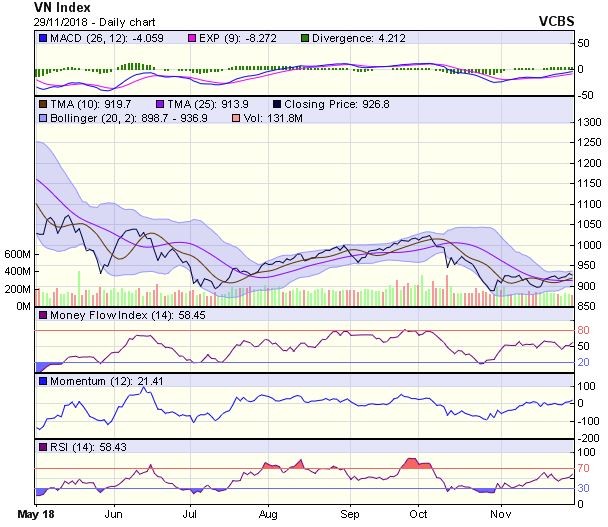 Vùng kháng cự của chỉ số nằm tại 930-935 điểm và 955-965 điểm. Vùng hỗ trợ của chỉ số nằm tại 918-923 điểm và 905-910 điểm.