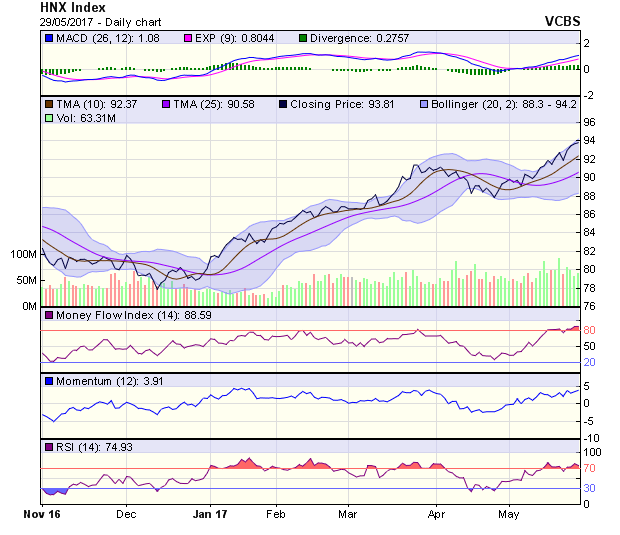 Biểu đồ kỹ thuật HNX-Index. Nguồn: VCBS