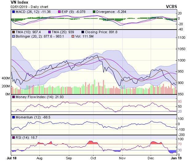 Dự báo, trong phiên giao dịch tiếp theo 3/1, xu hướng của VN-Index có thể sẽ là giằng co và đi ngang với biên độ trong khoảng 880-900 điểm với nền tảng thanh khoản thấp