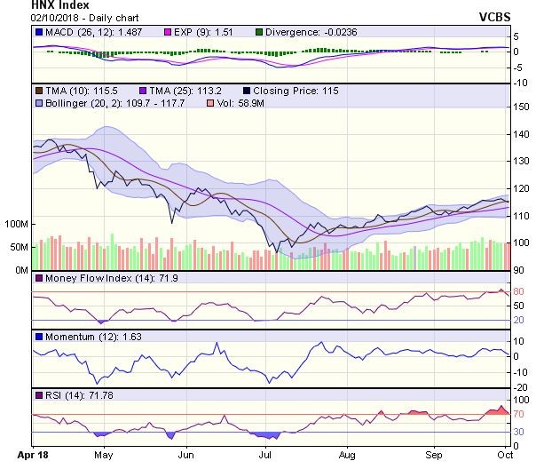 Biểu đồ kỹ thuật HNX-Index. Nguồn: VCBS.