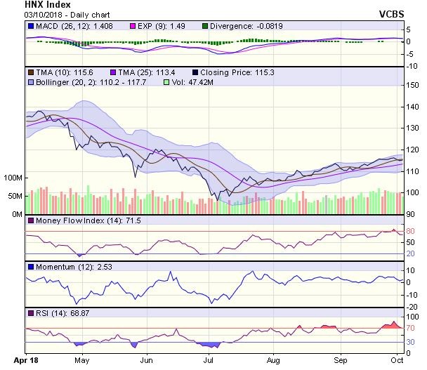 Biểu đồ kỹ thuật HNX-Index. Nguồn: VCBS.