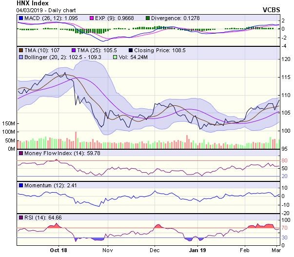 Biểu đồ kỹ thuật HNX-Index. Nguồn: VCBS.