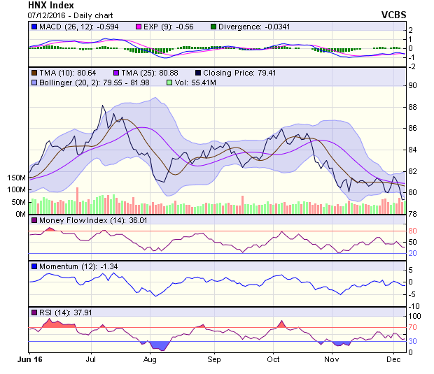 Trong phiên ngày 8/12, HNX-Index có thể hồi phục để hướng đến kháng cự gần nhất tại 80,4 điểm, nếu điều chỉnh xảy ra thì hỗ trợ gần nhất của chỉ số ở mức 78,1 điểm.