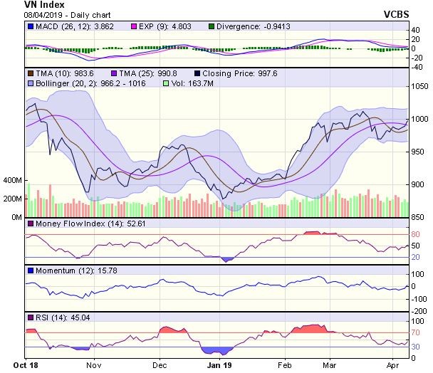Nếu vượt qua vùng cản này, chỉ số sẽ hướng đến thử thách vùng kháng cự 1.019-1.024 điểm trong ngắn hạn.