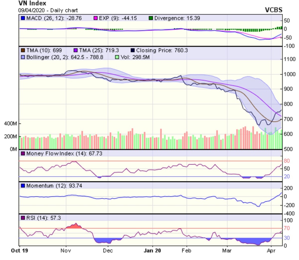 Thị trường được dự báo có thể gặp phải một vài phiên điều chỉnh trước khi có thể tiếp tục tiến tới vùng kháng cự 780-800 điểm. Nếu chỉ số tiếp tục vượt qua vùng hỗ trợ này thì có xác lập một xu hướng tăng trong trung hạn.