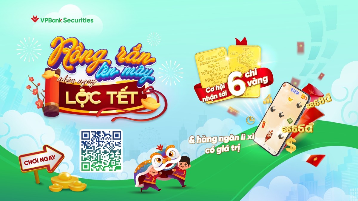 Ngoài khuyến mãi margin siêu hời, VPBankS cũng đang triển khai chương trình trò chơi trúng thưởng “Rồng rắn lên mây - Nhận ngay lộc Tết” với hàng nghìn phần quà hấp dẫn, bao gồm lì xì tiền mặt và giải thưởng lên tới 6 chỉ vàng. Sự kiện là hoạt động nhằm tri ân và đồng hành cùng khách hàng, đón nhận những cơ hội đầu tư mới của VPBankS trong dịp Tết cổ truyền Ất Tỵ 2025.