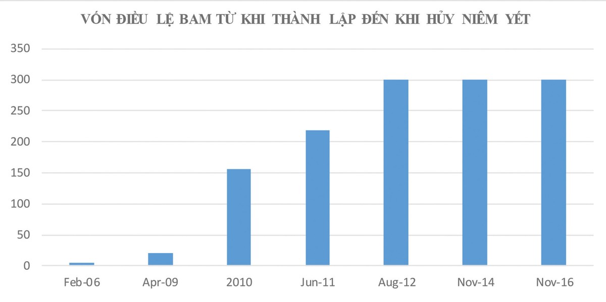 Tăng vốn ồ ạt trước khi niêm yết bằng 2 lần phát hành riêng lẻ cho 3 cổ đông hiện hữu, thế nhưng, ở thời điểm tháng 9/2014, khi BAM chuẩn bị niêm yết, Công ty không có cổ đông nào sở hữu từ 5% vốn điều lệ trở lên. Cổ phiếu của BAM được “tán nhỏ” cho nhiều người, sau lên sàn là những phiên giao dịch khổng lồ và rồi biến mất trên TTCK.