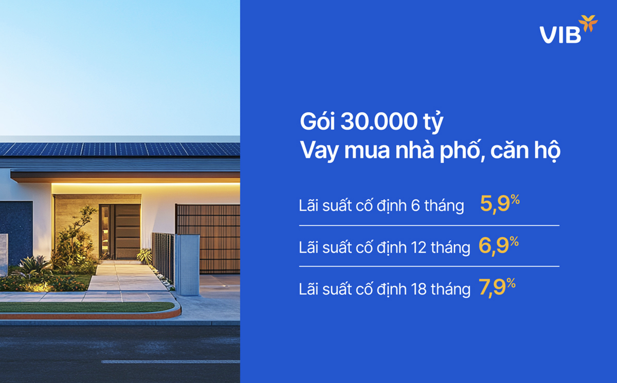 Theo báo cáo thị trường bất động sản Hà Nội quý III/2024 của Savills Việt Nam, nguồn cung mới trên thị trường bất động sản ghi nhận sự tăng trưởng mạnh mẽ, tăng tới 95% so với quý trước và 178% so với cùng kỳ năm trước, đạt gần 5.300 căn. Bên cạnh đó, nhu cầu mua nhà vào dịp cuối năm thường là rất lớn, đặc biệt tại các thành phố như TP.HCM, Hà Nội, Hải Phòng, Bình Dương, Đồng Nai, Cần Thơ và Đà Nẵng. Với lãi suất cạnh tranh bậc nhất thị trường chỉ từ 5,9%/năm và những tính năng vượt trội, gói vay mua nhà phố và căn hộ chung cư của VIB là chìa khóa giúp hàng ngàn gia đình nhanh chóng sở hữu ngôi nhà mơ ước.