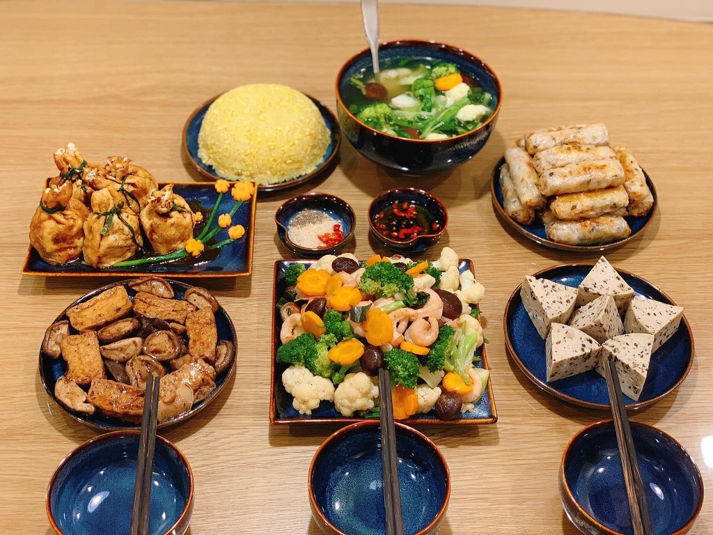 Tài khoản Chun Chun Mai cho rằng vào ngày rằm tháng Giêng, các gia đình nên chuẩn bị mâm cơm chay cúng gia tiên cho thanh tịnh. Bà nội trợ này cũng đưa ra gợi ý các món chay gồm xôi lá cẩm, chả nem chay, nộm, canh thập cẩm, chả cốm, rau cải xào nấm.