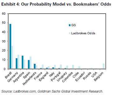 Goldman Sachs (GS) không phải là đơn vị đầu tiên đưa ra gợi ý về tỷ lệ đặt cược với World Cup, nhưng các nhà phân tích chuyên nghiên cứu về GDP và EBITDA có những quan điểm rất rõ ràng về môn thể thao tuyệt vời này.