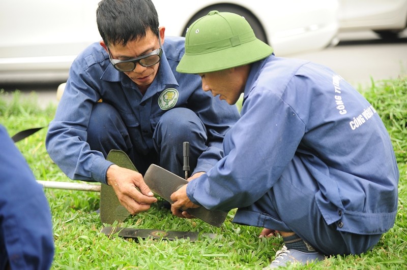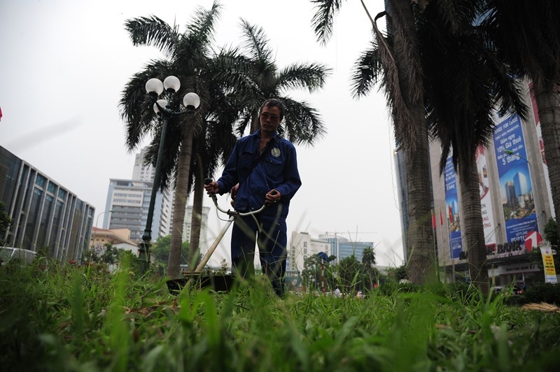 Bắt đầu từ 9/10, công nhân của Công ty cây xanh Hà Nội đã tiến hành cắt cỏ trên nhiều tuyến phố lớn