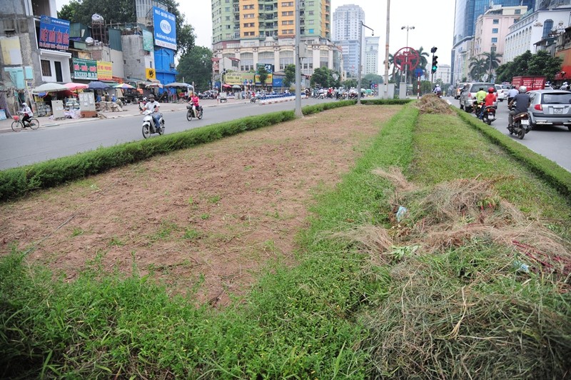 Khu đất được dọn dẹp sạch cỏ chờ trồng hoa mới trên đường Nguyễn Chí Thanh