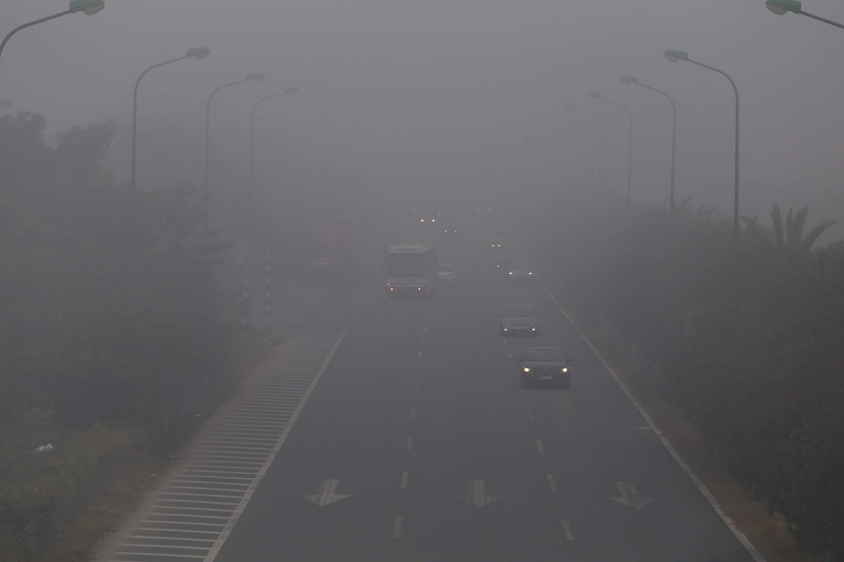 Xe di chuyển tại Đại lộ Thăng Long phải bật đèn pha, đi chậm hơn bình thường.