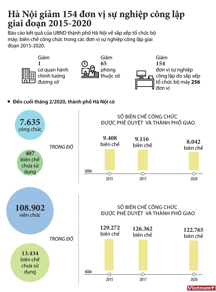 Theo TTXVN Tin liên quan GS.TS Nguyễn Anh Trí: Tinh giản biên chế không được cào bằng 08/11/2019 10:06 Hà Nội sẽ xem xét thí điểm tổ chức mô hình chính quyền đô thị 19/02/2020 14:26 TP.HCM kiến nghị cho thí điểm mô hình chính quyền đô thị 04/11/2019 09:08 Phê duyệt tổng biên chế công chức năm 2020 24/08/2019 06:45 Từ khóa Đơn Vị Sự Nghiệp Công Lập Hà Nội Cơ Quan Hành Chính Biên Chế Công Chức Viên Chức