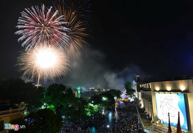 Ở góc nhìn từ Tràng Tiền Plaza, người xem chiêm ngưỡng trọn vẹn màn pháo hoa đẹp mắt trong 15 phút.