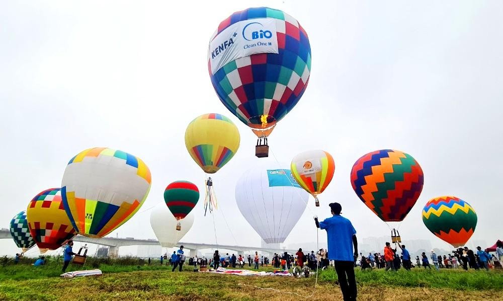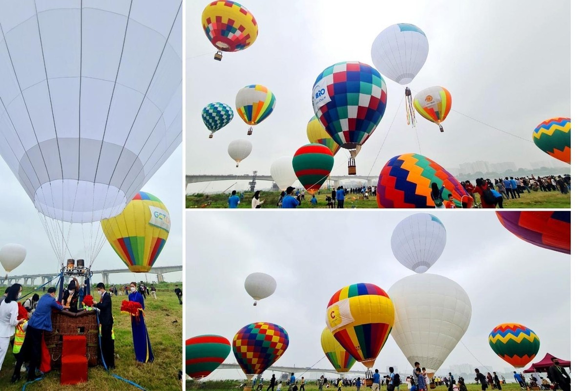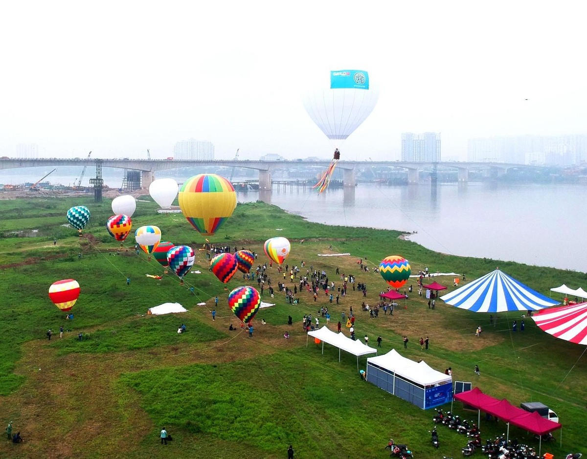 Ngày hội kinh khí cầu đã trình diễn bay cùng lúc 22 khinh khí cầu chào năm 2022 tại không gian xanh ven sông Hồng, trung tâm Thủ đô.
