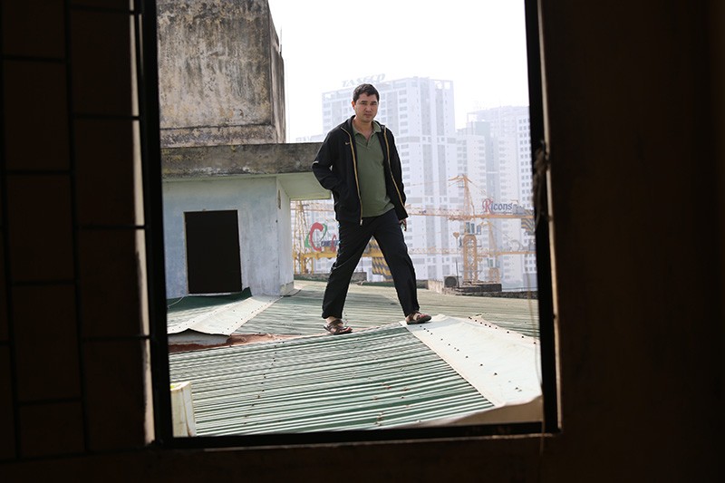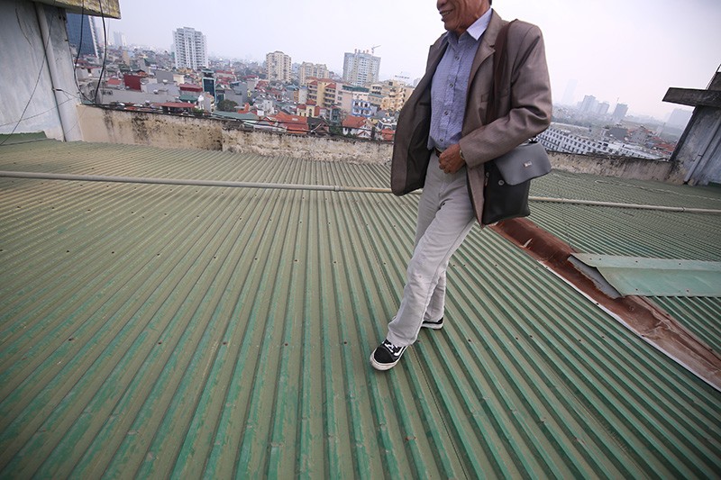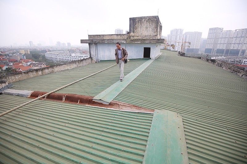 Anh Bùi Văn Nam, người sống tại tầng 8 cho biết, mình mới mổ tim không thể đi thang bộ nên đành phải liều mình đi trên mái tôn nếu muốn xuống nhà suốt nhiều tháng nay
