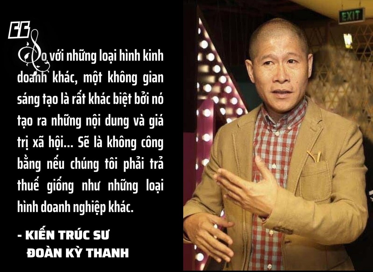 “So với những loại hình kinh doanh khác, một không gian sáng tạo là rất khác biệt bởi nó tạo ra những nội dung và giá trị xã hội. Chúng tôi tạo ra sự kết nối giữa những người làm trong lĩnh vực sáng tạo và những người sử dụng sự sáng tạo, và sự kết nối với chính quyền. Chúng tôi cung cấp những không gian miễn phí cho nghệ thuật, tạo ra cộng đồng thông qua những sự kiện công cộng, chúng tôi tạo cảm hứng cho hàng ngàn người. Sẽ là không công bằng nếu chúng tôi phải trả thuế giống như những loại hình doanh nghiệp khác”, kiến trúc sư Đoàn Kỳ Thanh, sáng lập Hanoi Creative City nói.