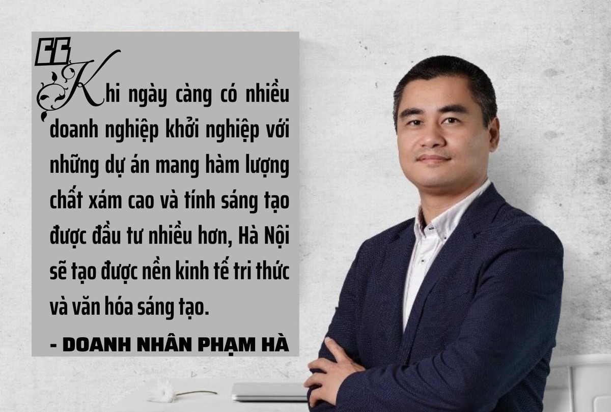 "Thành phố Hà Nội cần tạo ra sân chơi, hỗ trợ doanh nghiệp khởi nghiệp trong 5 năm đầu không tính thuế để khuyến khích nhiều người khởi nghiệp và có nhiều sáng tạo hơn khi khởi nghiệp", doanh nhân Phạm Hà nhấn mạnh.