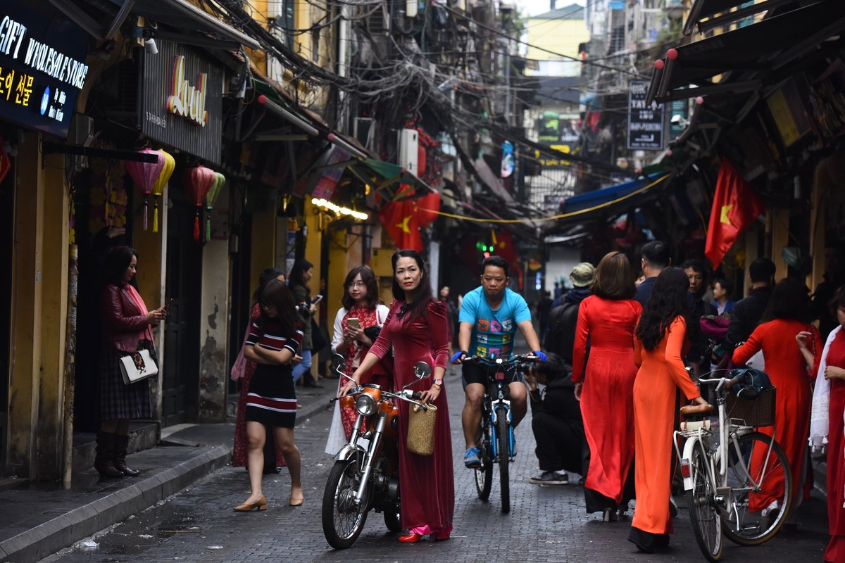Khu vực phố cổ, nhiều bạn trẻ có mặt từ rất sớm để chụp ảnh.