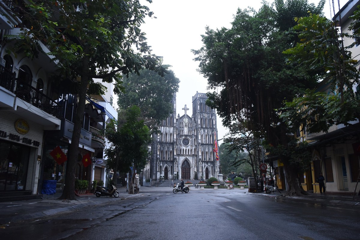 Khu phố Nhà Thờ lớn tĩnh mịch trong sáng sớm đầu năm.