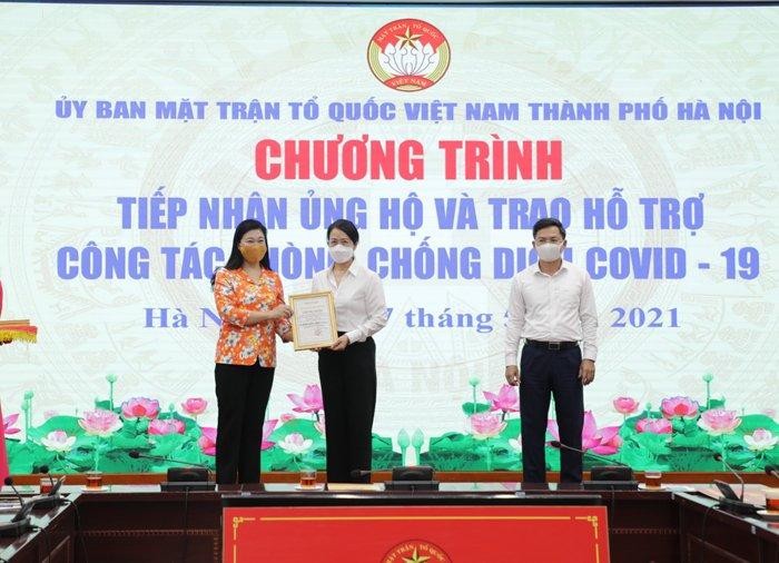 Chiều cùng ngày, Ủy ban Mặt trận Tổ quốc Việt Nam thành phố Hà Nội đã tổ chức chương trình tiếp nhận ủng hộ và trao hỗ trợ công tác phòng, chống dịch Covid-19.