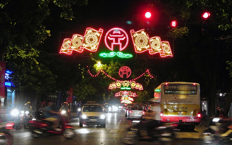 (ĐTCK) Những ngày này, các tuyến phố lớn của Thủ đô được trang hoàng đèn hoa rực rỡ sắc màu chào đón năm mới. (Ảnh: Dũng Minh).
