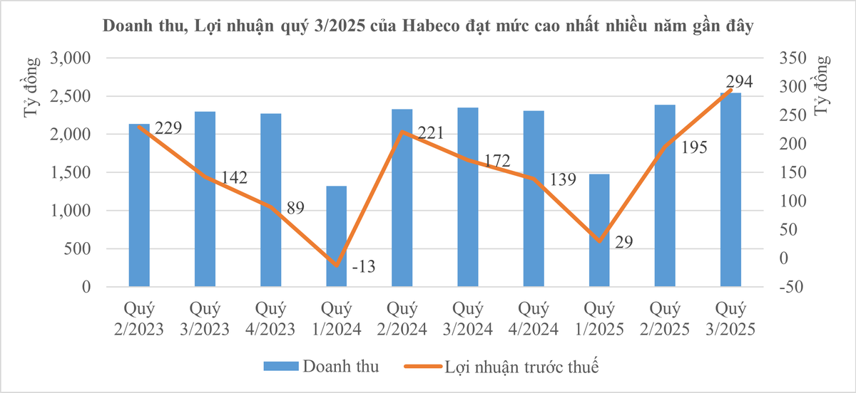 Cùng với việc quản lý hiệu quả chi phí bán hàng và chi phí quản lý, giúp giảm cả về giá trị tuyệt đối lẫn tỷ lệ chi phí trên doanh thu, lợi nhuận trước thuế hợp nhất của Habeco trong quý 3/2025 đạt 294,2 tỷ đồng, tăng 71,4% so với cùng kỳ năm trước. Lợi nhuận sau thuế đạt 238,4 tỷ đồng, tăng 72,2%. Đây cũng là mức lợi nhuận theo quý cao nhất của Tổng công ty kể từ năm 2021 đến nay.
