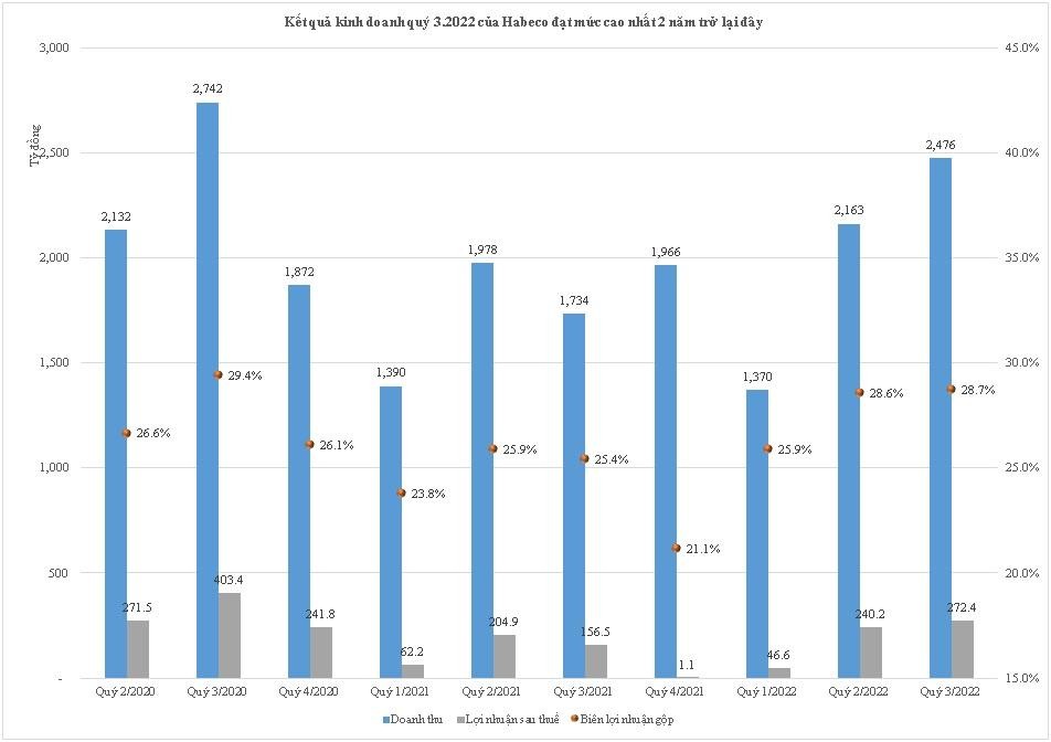 Kết thúc quý 3/2022, báo cáo tài chính của Habeco cho biết, Tổng Công ty đã đạt gần 2.476 tỷ đồng doanh thu hợp nhất, tăng 42,8% so với cùng kỳ năm trước và tăng 14,5% so với quý liền trước.
