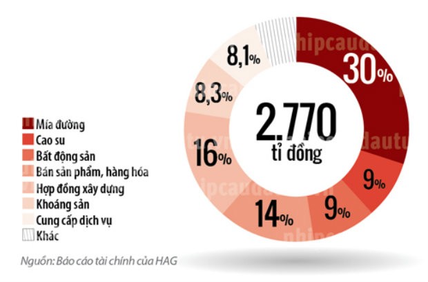 Sự thay đổi này cũng thể hiện rõ trong kết quả kinh doanh năm 2013. Theo đó, mía đường là lĩnh vực đóng góp nhiều nhất trong tổng doanh thu của HAG với 30%, trong khi bất động sản chỉ chiếm 9%. Trước đó, bất động sản vẫn là nguồn thu chính của tập đoàn này với mức đóng góp hằng năm vào khoảng 60%.