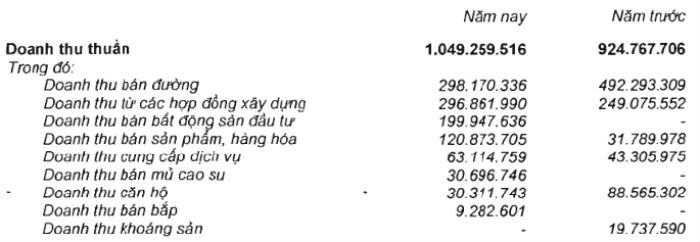 Theo đó, trong quý I, HAG đạt hơn 1.049 tỷ đồng doanh thu, tăng 14% so với cùng kỳ 2014, trong đó đáng chú ý HAG ghi nhận 200 tỷ đồng bán bất động sản đầu tư (cùng kỳ không có khoản này), doanh thu từ bán sản phẩm-hàng hóa tăng 280% lên gần 121 tỷ đồng, doanh thu bán đường giảm 39% xuống 298 tỷ đồng, doanh thu từ căn hộ giảm 65% xuống 30 tỷ đồng...