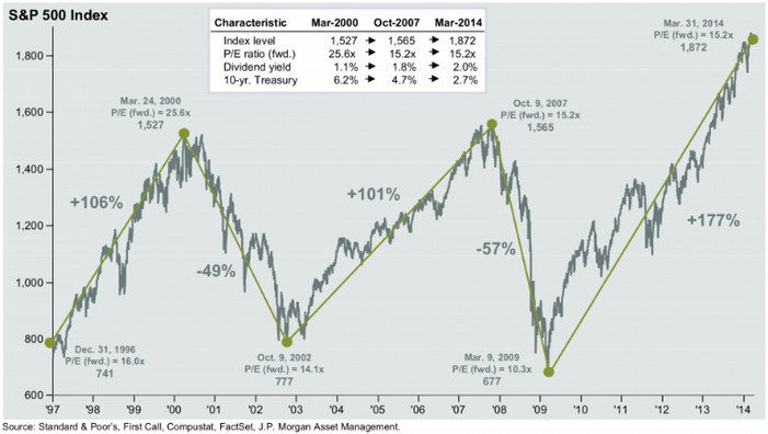 (ĐTCK) Dĩ nhiên, không mô hình nào trong số các mô hình kể trên có thể là một chỉ dẫn thực sự hữu ích. Có thể thị trường sẽ đi ngang thêm 1 thập kỷ nữa. Ai biết. Nhưng rõ ràng là một sự thay đổi trong cách nhìn có thể lật ngược câu chuyện của biểu đồ.