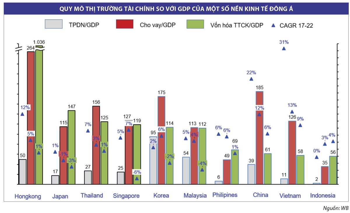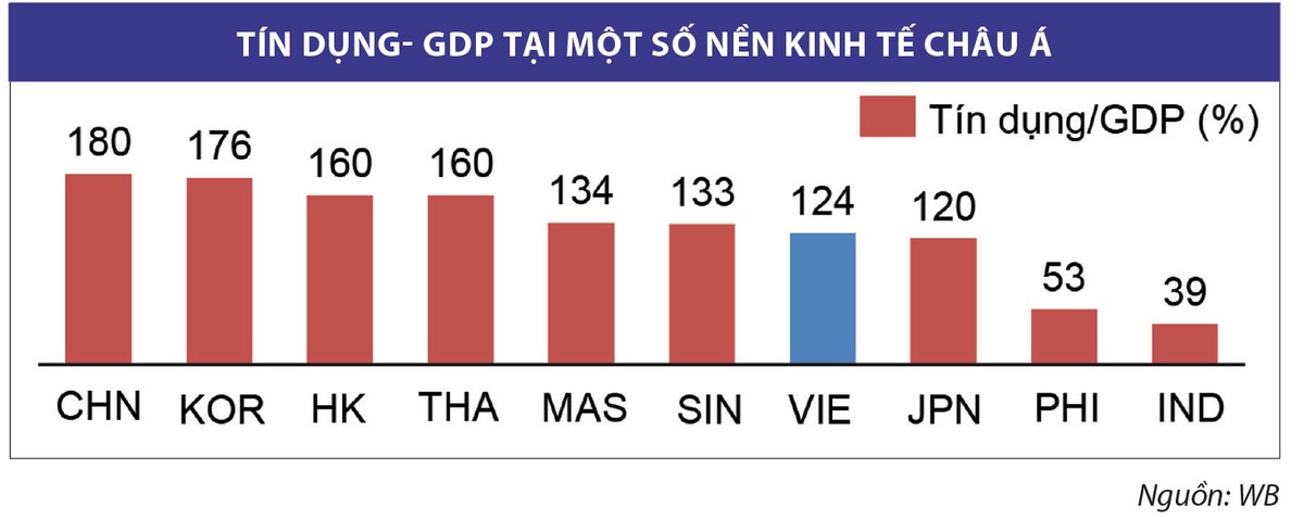 Tín dụng là một nguồn vốn vô cùng quan trọng, thậm chí được ví như “máu” đối với doanh nghiệp và toàn bộ nền kinh tế, đặc biệt tại các quốc gia châu Á. Không giống như thị trường Mỹ hay nhiều nước châu Âu phát triển khác, các doanh nghiệp sử dụng nguồn vốn đa dạng, trong đó họ thích dùng vốn chủ sở và trái phiếu doanh nghiệp, doanh nghiệp tại các nền kinh tế châu Á vẫn sử dụng nguồn vốn vay là chủ yếu. Đây cũng là một lý do khiến tỷ lệ tín dụng/GDP tại các nền kinh tế châu Á cao hơn 100% (Hình 1). Chẳng hạn, tỷ lệ tín dụng/ GDP tại Trung Quốc là 180%, tại Hàn Quốc, Thái Lan lần lượt là 176% và 160%. Việt Nam ở mức trung bình với tỷ lệ tín dụng/GDP đạt khoảng 124%.