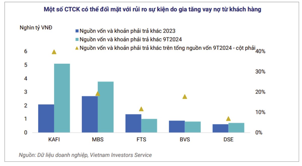 VIS Rating cũng nhận định, cho vay ký quỹ với các khách hàng lớn gia tăng sẽ tăng rủi ro tổn thất với công ty chứng khoán.