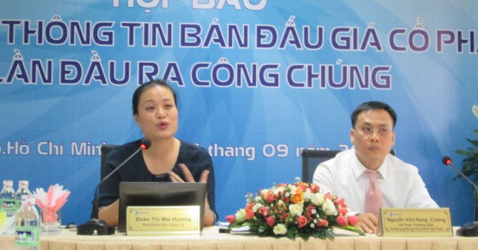 Bà Đoàn Thị Mai Hương trong cuộc họp báo cung cấp  thông tin về IPO Công ty SASCO
