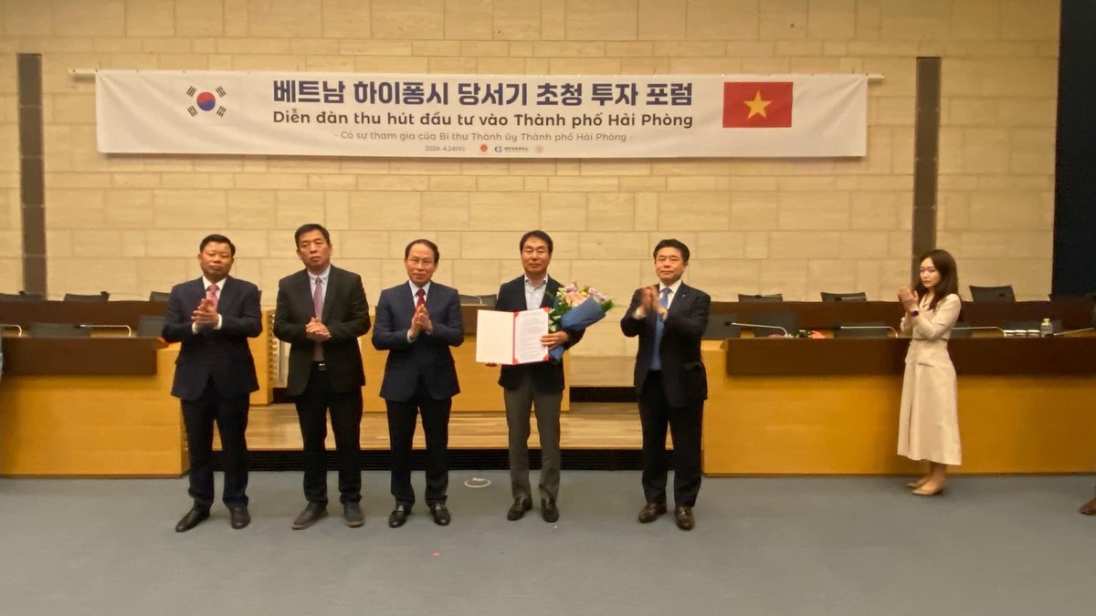 Tại Hội nghị, đại diện lãnh đạo TP. Hải Phòng đã trao Giấy chứng nhận đăng ký đầu tư cho các dự án cấp mới và điều chỉnh tăng vốn đến các nhà đầu tư: Dự án của Công ty TNHH INNOX ECOM (cấp mới 10 triệu USD) vào KCN Nam Đình Vũ; Dự án sản xuất, gia công, lắp ráp, tấm bo mạch chủ (Main PCB), màn hình hiển thị PCB của Công ty TNHH Seyoung Việt Nam cấp mới 35 triệu USD tại KCN DEEP C IIA; Dự án của Công ty TNHH DH Lightning Vina (tăng vốn 55,8 triệu USD) tại KCN DEEP C; Công ty TNHH HKT Electronics Việt Nam Hải Phòng (tăng vốn 73,5 triệu USD) tại KCN Tràng Duệ; Công ty TNHH Kyungnam Chemical Vina (tăng vốn 72 triệu USD) tại KCN Nam Cầu Kiền; Công ty TNHH Youngjin E&C Vina (tăng vốn 51 triệu USD), Công Ty TNHH Hanmiflexible Vina (tăng vốn 10 triệu USD) đều tại KCN Tràng Duệ; Công ty TNHH Hansung P.T.C Vina (tăng vốn 60 triệu USD) tại KCN Nam Cầu Kiền.