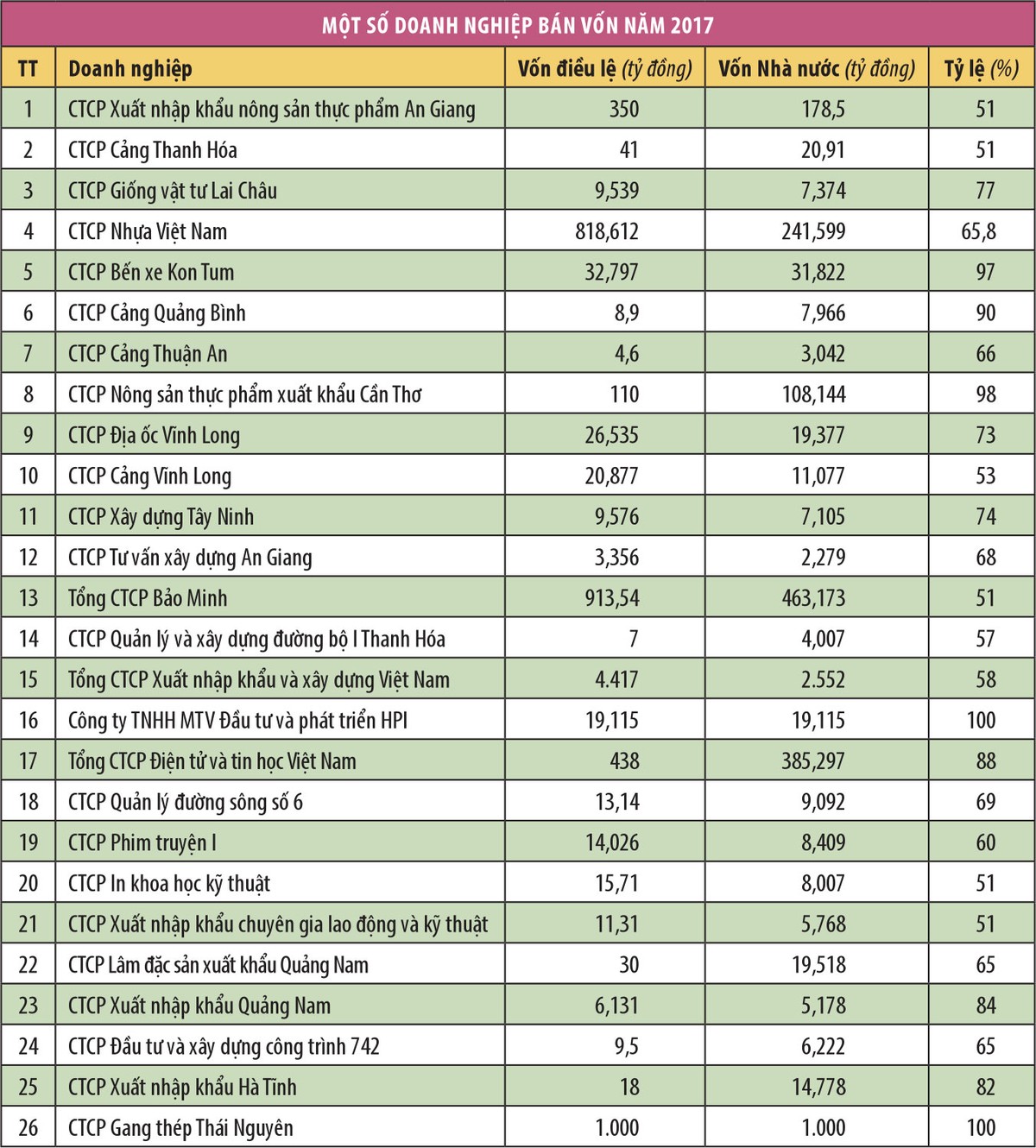 Theo kế hoạch, danh mục bán vốn năm 2017 của SCIC có 114 doanh nghiệp sau hiệu chỉnh, bổ sung (theo Công văn số 10890/BTC-TCDN ngày 15/8/2017 của Bộ Tài chính).