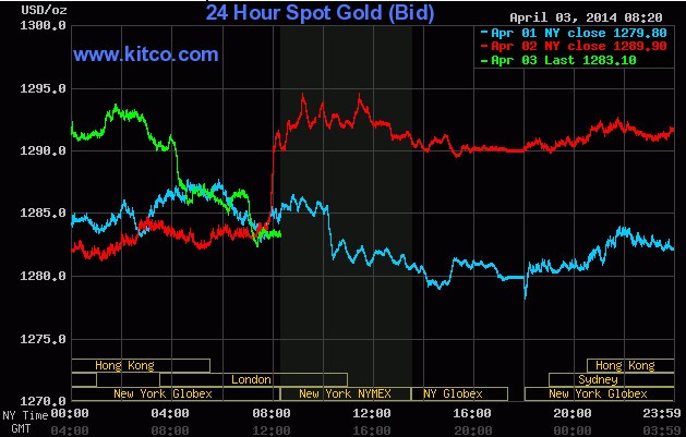 Kim loại quý đã tăng 0,9% ngày hôm qua, sau khi giảm xuống mức 1.277,79 USD/ounce hôm 1/4, thấp nhất kể từ 11/2/2014.