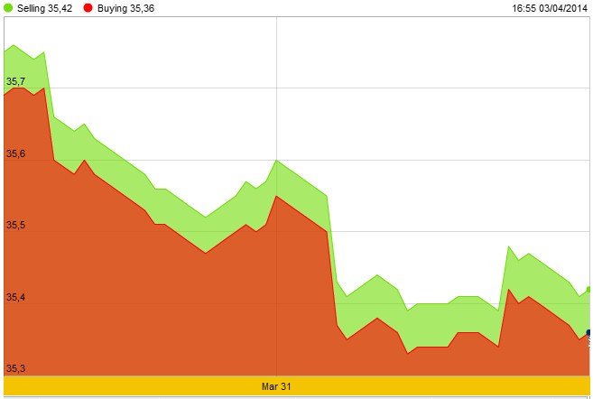 Giá USD tự do hôm nay giảm 10 đồng ở giá mua xuống còn 21.090 đồng/USD; giá bán giữ nguyên mức 21.110 đồng/USD. Giá USD do Vietcombank niêm yết giảm 5 đồng xuống còn 21.075 - 21.115 đồng/USD, thấp nhất kể từ ngày 27/1/2014.