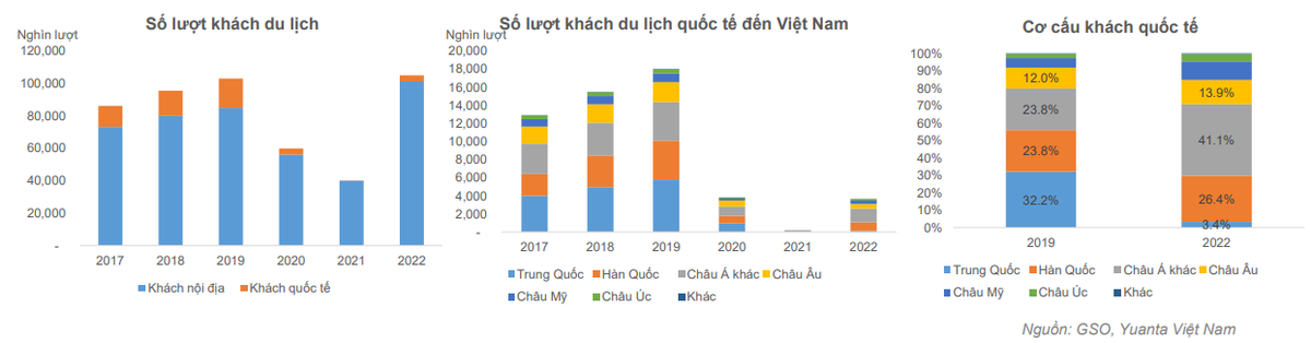 Trong báo cáo chiến lược năm 2023, Công ty Chứng khoán Yuanta Việt Nam đưa ra nhận xét, ngành du lịch đã chứng kiến sự hồi phục mạnh trong 2022 với động lực chủ yếu là nhu cầu trong nước với 101 triệu lượt khách, tăng 153% so với cùng kỳ năm trước, vượt 19% so với năm 2019.